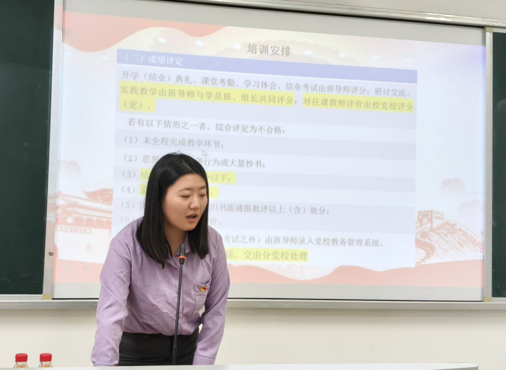 开班仪式在庄严肃穆的国歌声中拉开帷幕。首先,班导师蒋馨逸对本期培训班安排进行了详细介绍,涵盖环节设置、课程安排及结业、评优要求等。她着重强调学员们须端正学习态度、严守培训纪律、积极互动交流,以切实行动积极向党组织靠拢,并在思想碰撞中共同进步。