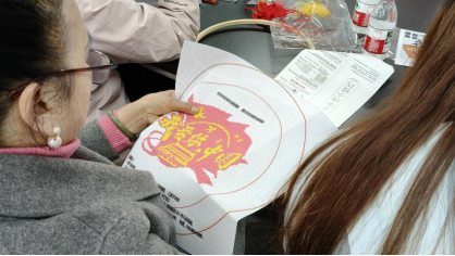 活动现场,宿管中心的党员同志手把手指导学生党员穿针引线,绣制图案,在轻松温馨的氛围中传授方法和技巧。学生党员们认真聆听,用心尝试,绣制出一幅幅饱含深情的作品——鲜艳的五星红旗、庄重的“盛世中华”字样、雄伟的天安门图案……一针一线都凝聚了同志们对伟大的党和祖国的深情挚爱。